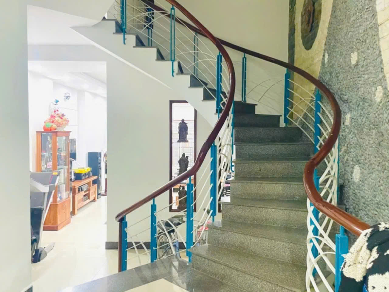 Nhà xây kiểu biệt thự, không gian rộng rãi, thoáng mát, kết cấu 3 tầng chắc chắn. Bố trí phòng ốc hợp lý, phù hợp cho gia đình ở lâu dài hoặc mở văn phòng – kinh doanh nhẹ nhàng đều tiện.
